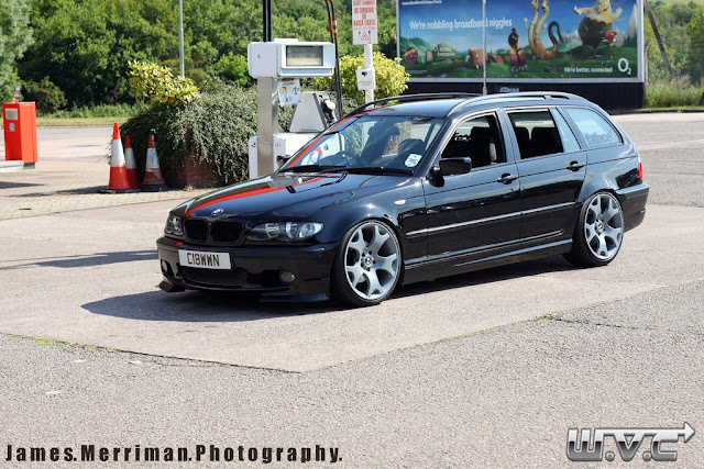 Incrivel BMW E46 Touring que se destaca pelo seu belo jogo de rodas personalizadas aro 20" e pela sua suspensão rebaixada que faz com que ela ande arrastando tudo pelas ruas.